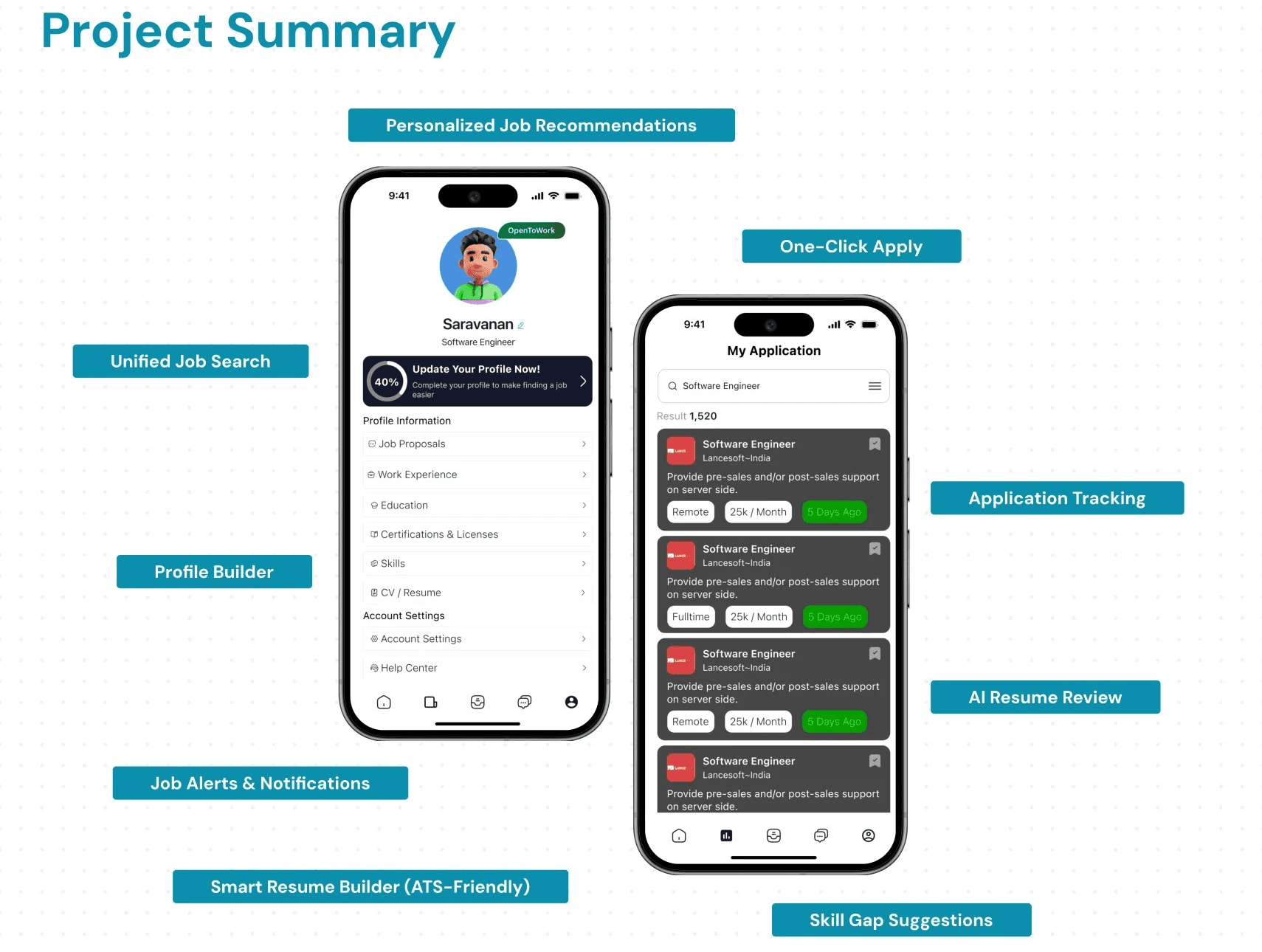 Job seekers often struggle with cluttered job listings, complex navigation, and a lack of clarity in tracking application statuses.